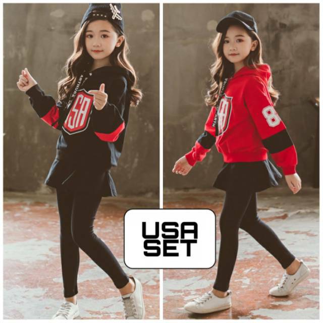 Beli setelan hoodie anak cewek import korea / baju setelan jaket anak.